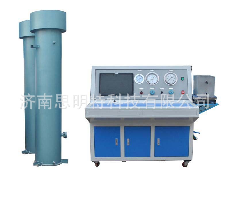 基本原理:由济南思明特气动增压泵SUP_M_80进行增压,在增压的同时,气瓶有定膨胀量,电子天平记录膨胀数值,计算机软件同时记录压力曲线,排水量曲线,到一定压力后自动停止加压,进入保压阶段,然后卸掉压力,电子天平称重残余水量,*计算出残余变形率。